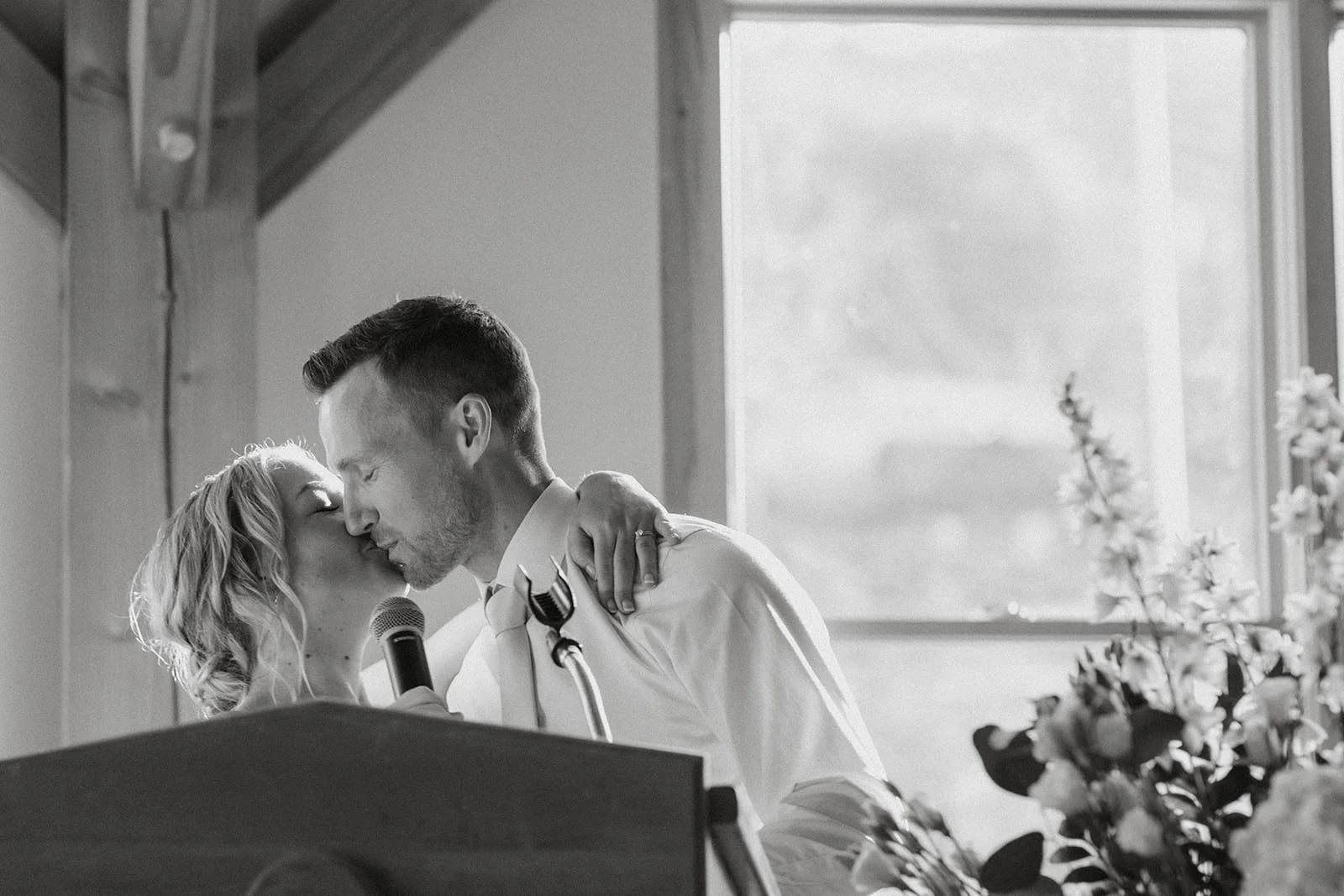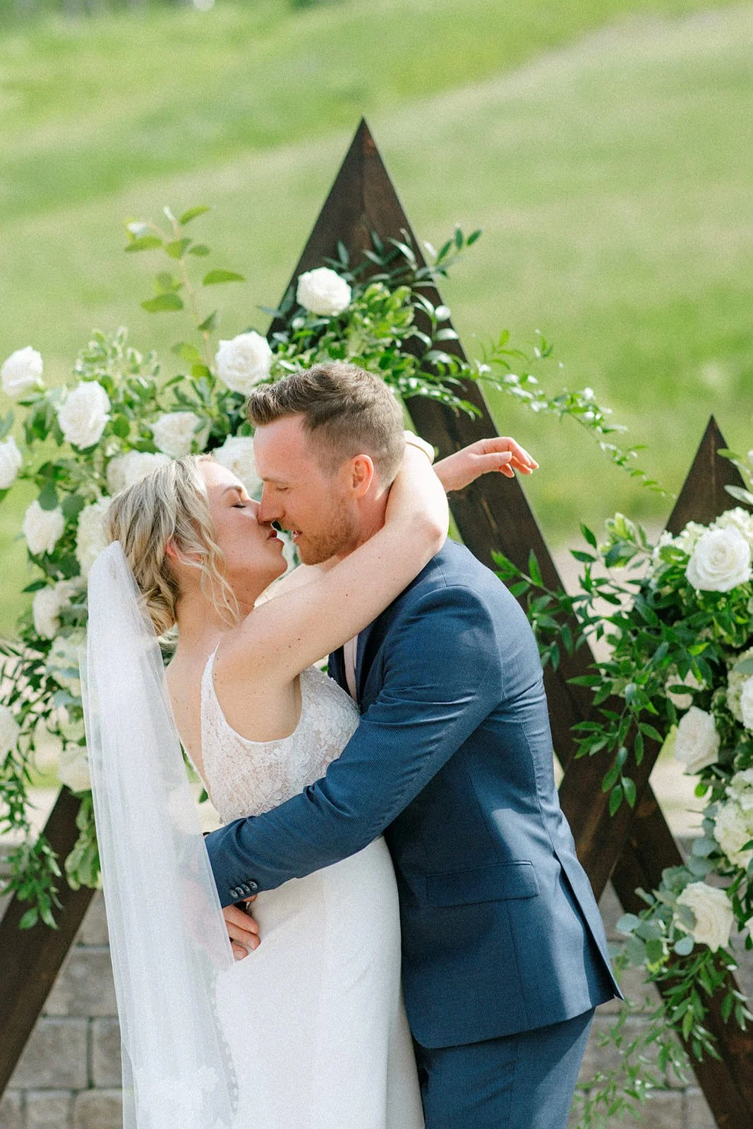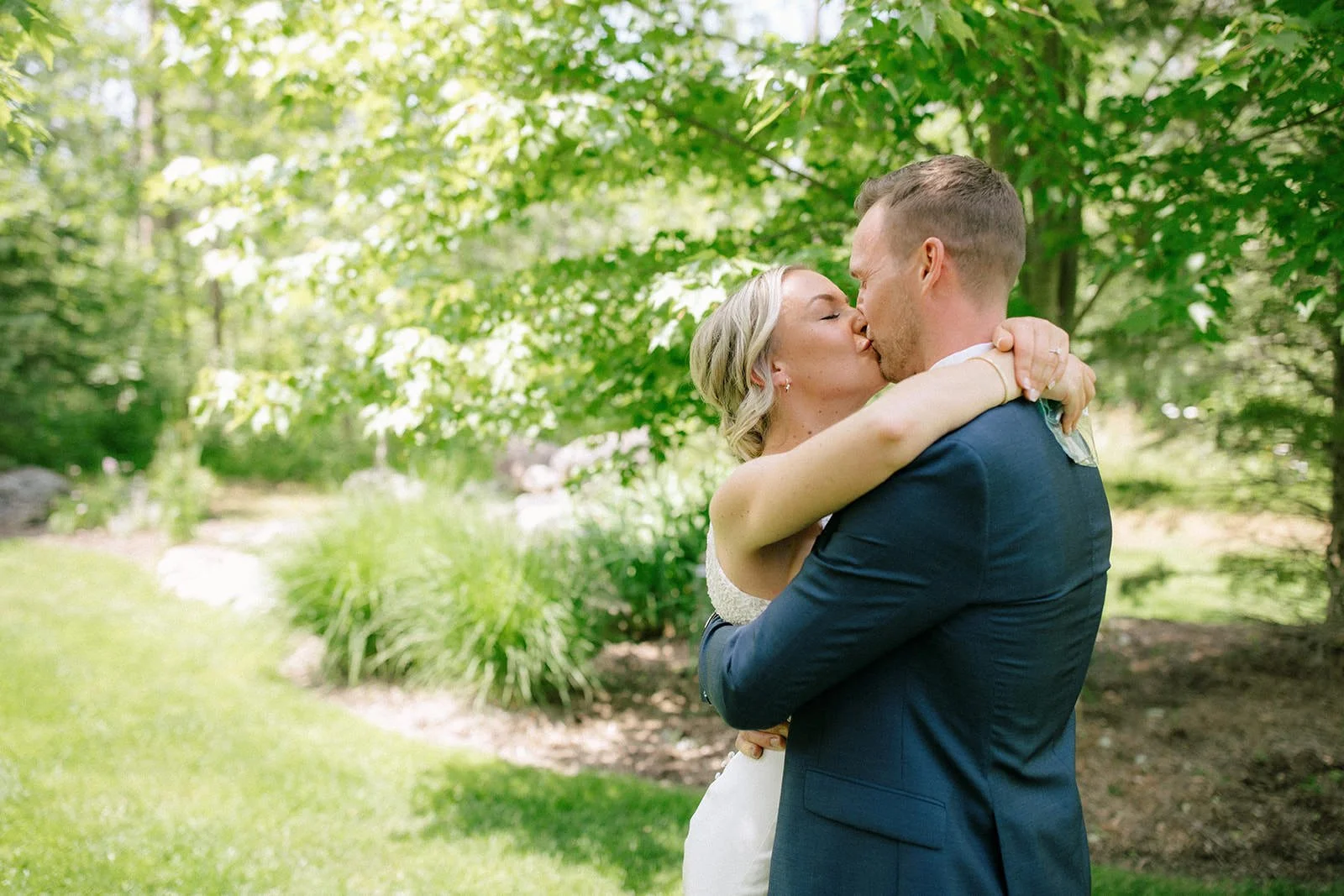 The boys started at Jon’s family’s chalet, for an easy-going morning of catching up and laughter. Jon’s polished hunter green 1970’s Corvette sat waiting in the garage—it was originally his dad’s! The ladies joined the party at the chalet and Kristy and Jon snuck away for an adorable first look in the garden’s shade.