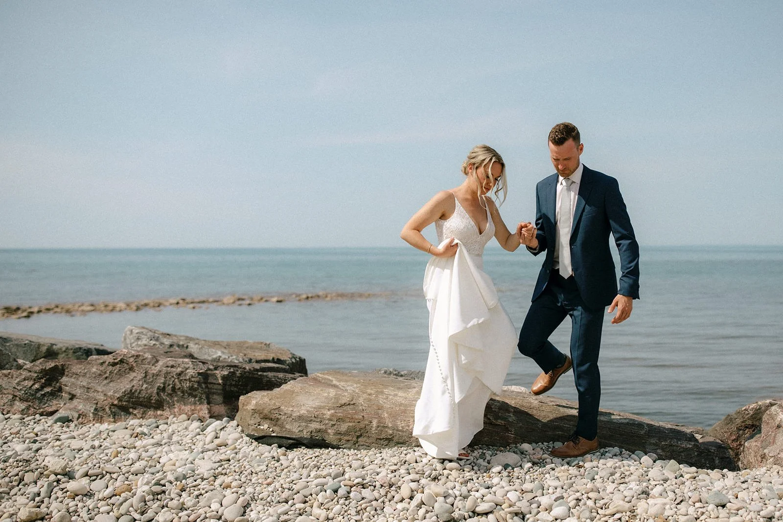 We stopped at Delphi Point beach to capture some quick photos against the pale blues and greys where the great lake meets the slate shore. Then on to Craigleith Ski Club where Jenn Duff of celebratinglife officiants conducted the most heartfelt ceremony, with lush green grass on the slopes swaying in the background.