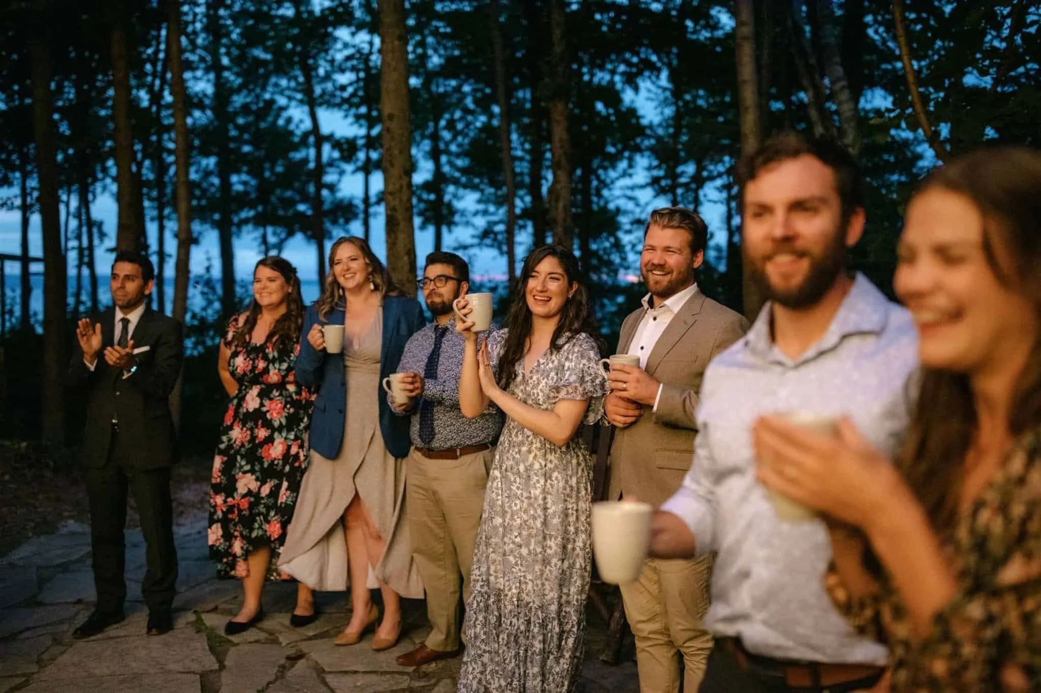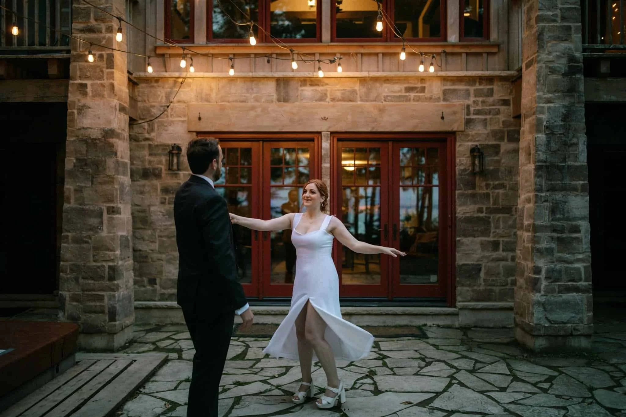 As the sun was setting, Jennifer decided to have a quick costume-change and slipped into a different white dress (if you can’t decide which wedding dress you love more, why not just wear them both!?) We snuck away to the waterfront to take some photographs of just the two of them. When we came back to the cottage, everyone gathered around, hot toddies in-hand to watch the couple share their first dance. One of my favourite parts of this wedding was that Jennifer and Lucas learned to dance especially for the occasion. They danced beautifully together and it was apparent that they were having so much fun. Below are a few of my favourite photos from this laid-back wedding by the lake.
